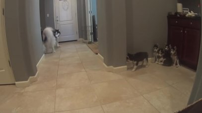 Huskies vs Wall of Toilet Paper!