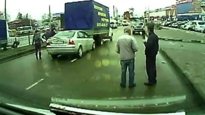 Нежданчик из-за грузовика…