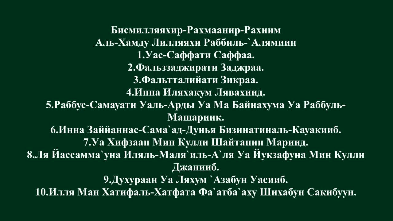 Мировоззрение 10.91 Mb 03:45 21.06.2020, 02:37 0 0 Необходима авторизация. Войти Сура Аль-Сафат (1-10) jama-221 Подписаться Подписка оформлена 445 9831 видео 0% 38 просмотров 0 проголосовавших Только зарегистрированные пользователи могут оставлять комментарии. Войдите, пожалуйста. Сначала новые Сначала новые Сначала старые Сначала популярные Возможно, Вас заинтересует 1 05:43 Сура аль-Анфаль (Трофеи), 20-35 ¦ Мухаммад аль Люхайдан 07.06.2017 935 0 4 10:58 Сура 56 «аль-Вакиа». Мухаммад аль Люхайдан 07.06.2017 1227 1 3 04:13 Сура 75 Аль-Кыяма (Воскресение) Насир Аль-Катами 03.07.2017 703 0 2 03:26 Насир аль-Катами - Сура 15 «Аль-Касас» 29-35 03.07.2017 846 0 2 02:42 Насир аль-Катами. Сура 101 «аль-Кариа» 03.07.2017 799 0 2 03:08 Насир аль-Катами - Сура 2 «аль-Бакара» 135-141 04.07.2017 730 0 6 13:11 Красивое чтение Корана. Сура 15 «аль-Хиджр». Хазза аль-Балуши 06.09.2017 1873 0 1 03:55 Ибрахим аль-Джибрин. Сура 63 Аль-Мунафикун (Лицемеры) 27.10.2017 677 0 1 05:34 Насир аль-Катами - Сура 15 «аль-Хиджр» 26-50 12.12.2017 783 0