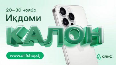 Омодагӣ бинеду аз 10 то 18 ноябр телевизор, мошинаи ҷомашӯӣ, яхдон ва дигар техникаро ба насия то 18 моҳ бе комиссия гиред — alifshop.tj ( https://alf.tj/kalonvolna)